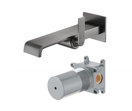 Stream Смеситель для раковины 21 см встраиваемый в стену сталь брашированная (SmartBox в комплекте)