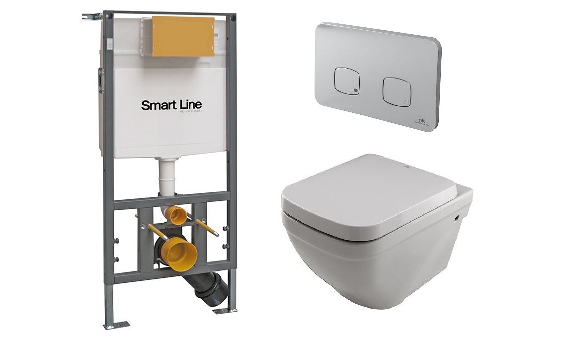 NK Concept Комплект (унитаз подвесной+сиденье для унитаза+инсталляция+кнопка смыва) белый